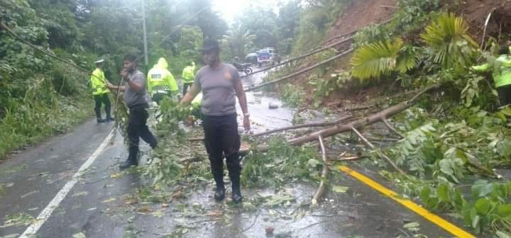 Dari pantauan jurnal6.com, Satuan Sabhara Polres Kepulauan Sangihe yang dipimpin oleh Kasat Sabhara Iptu DJ Walangitan SE, melakukan pembersihan jalan l, khususnya memotong kayu yang terbawa oleh longsong sehingga menutupi sebagian jalan antara Tahuna dan Manganitu,