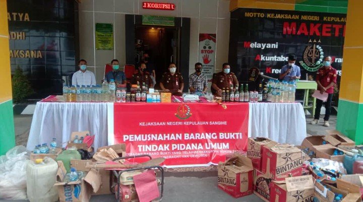 Kejaksaan Negeri (Kejari) Kepulauan Sangihe melaksanakan pemusnahan barang bukti (Babuk) Perkara Tindak Pidana Umum yang telah mempunyai kekuatan hukum tetap (inkracht) yang amar putusannya dirampas untuk dimusnahkan.