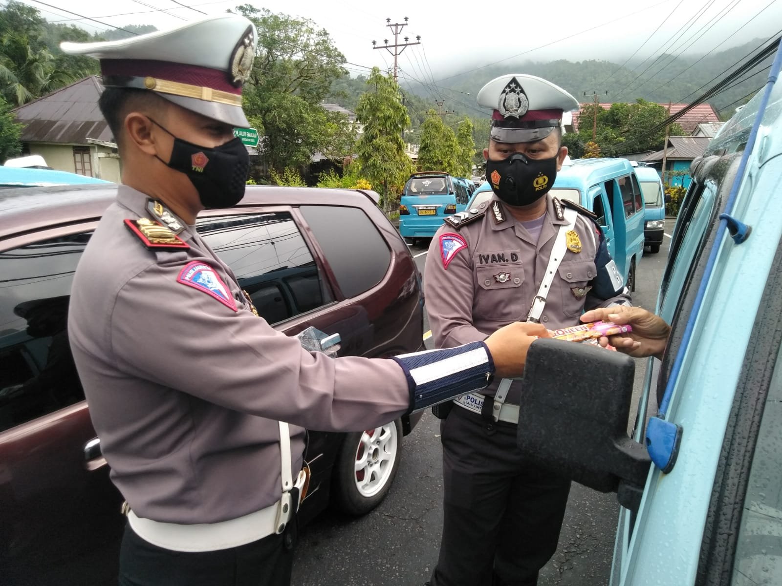 “Dari hasil operasi yustisi hari ini, kami temukan 16 pengendara dan penumpang yang tidak menggunakan masker, empat kendaraan yang kita amankan karena sopir tidak memiliki SIM A umum serta dua surat-surat yang kami amankan dan untuk coklat kami sudah membagikan 15 coklat,”tambahnya.