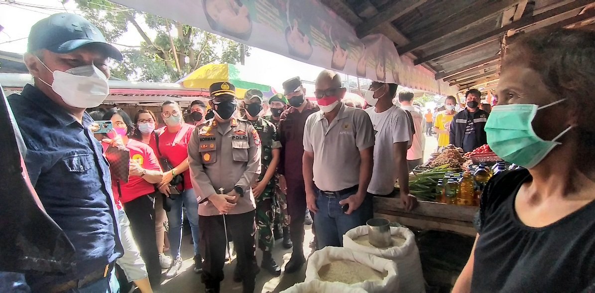 Foto: Kepala Dinas Perindag Minsel, Adrian Sumuweng, saat mendampingi Bupati Minsel, Franky Wongkar, melaksanakan sidak di Pasar Amurang, beberapa waktu lalu.