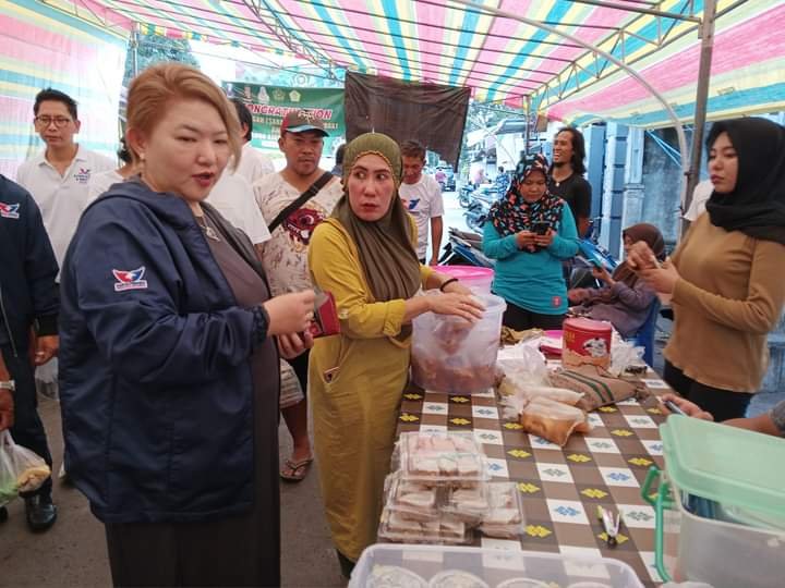 Ketua Dewan Pimpinan Wilayah (DPW) Partai Perindo Provinsi Sulawesi Utara (Sulut), Jaclyn Ivana Koloay, berbagi takjil di bulan suci Ramadhan, Kamis (6/4/2023).