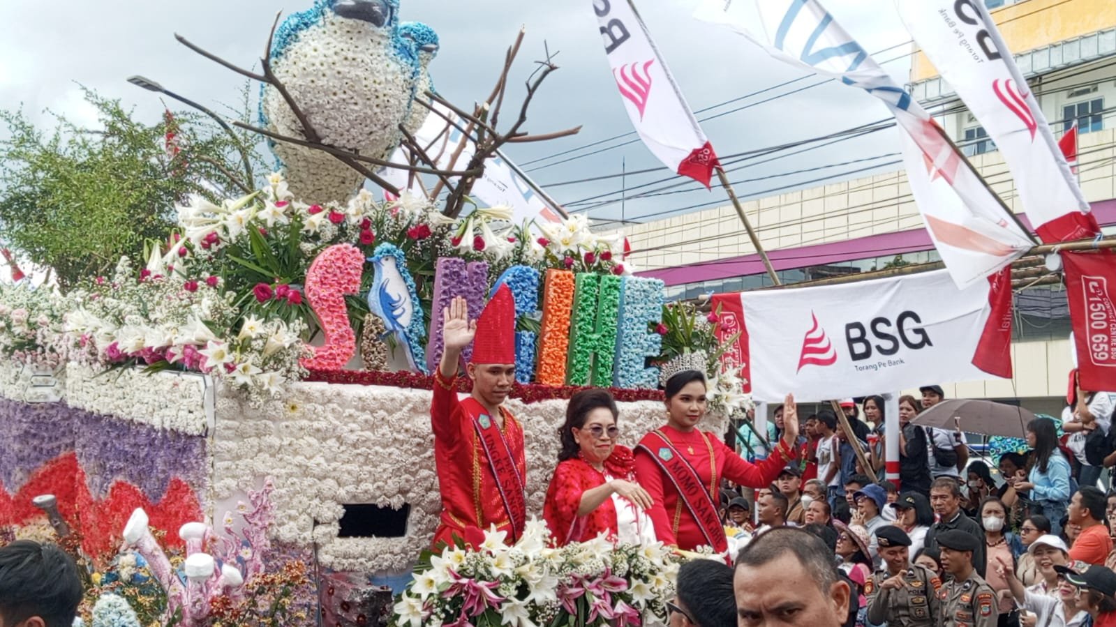 Namun menariknya, dari sekian peserta, Pemerintah Daerah Kabupaten Kepulauan Sangihe melalui Dinas Pariwisata menampilkan sesuatu yang di luar ekspektasi semua orang. Sebab dalam parade kendaraan hias kali ini, Penjabat Bupati Kepulauan Sangihe, dr Rinny Tamuntuan ikut serta di atas kendaraan hias dan menyapa para tamu undangan serta masyarakat yang menyaksikan.