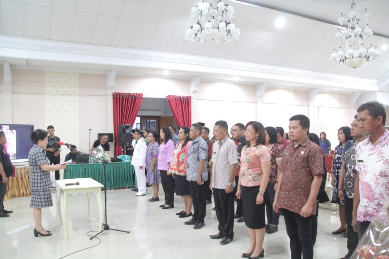 Penjabat Bupati Kepulauan Sangihe, dr Rinny Tamuntuan, melakukan pelantikan dan pengambilan sumpah bagi 28 pejabat administrator di Lingkup Pemerintah Kabupaten Sangihe pada Kamis, 30 November 2023.
