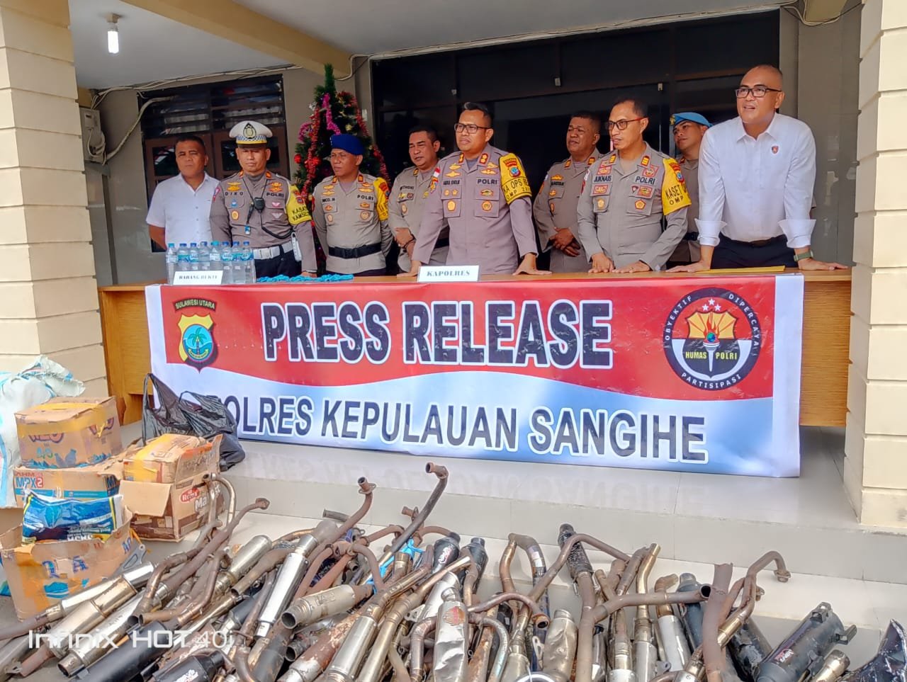 Polres Kepulauan Sangihe menggelar press release untuk memaparkan capaian dan evaluasi kinerja sepanjang tahun 2024, Selasa (31/12/2024).