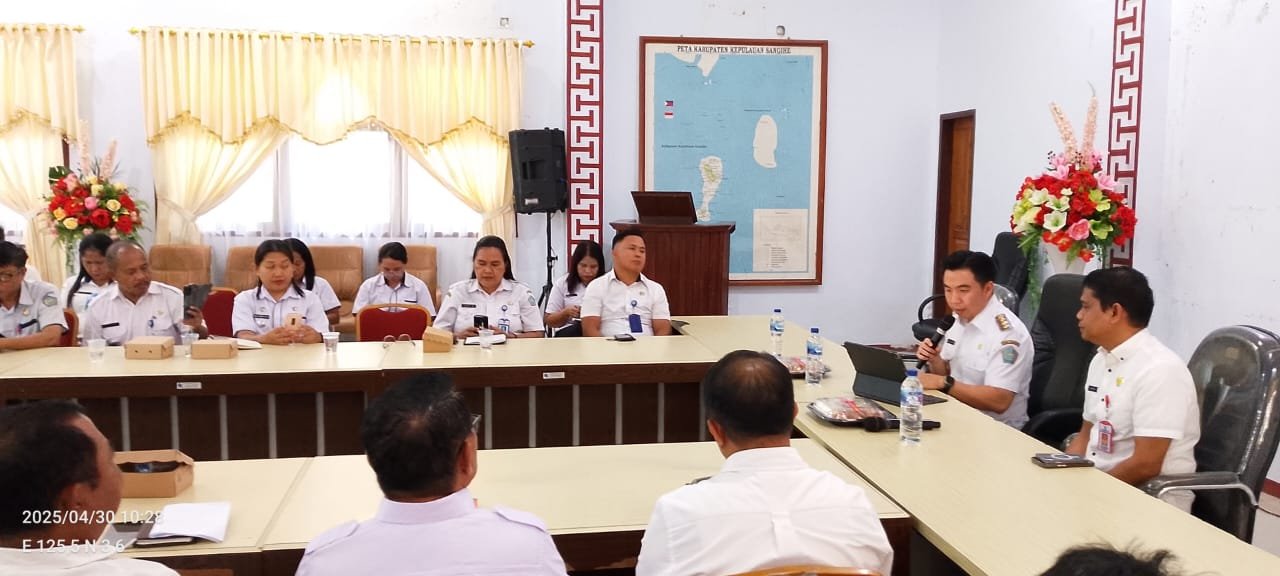 Bupati Kepulauan Sangihe, Michael Thungari SE MM, memimpin langsung Rapat Evaluasi Dokumen Kabupaten/Kota Sehat Tahun 2025 yang digelar di Ruang Serbaguna Kantor Bupati, Rabu (30/4/2025).