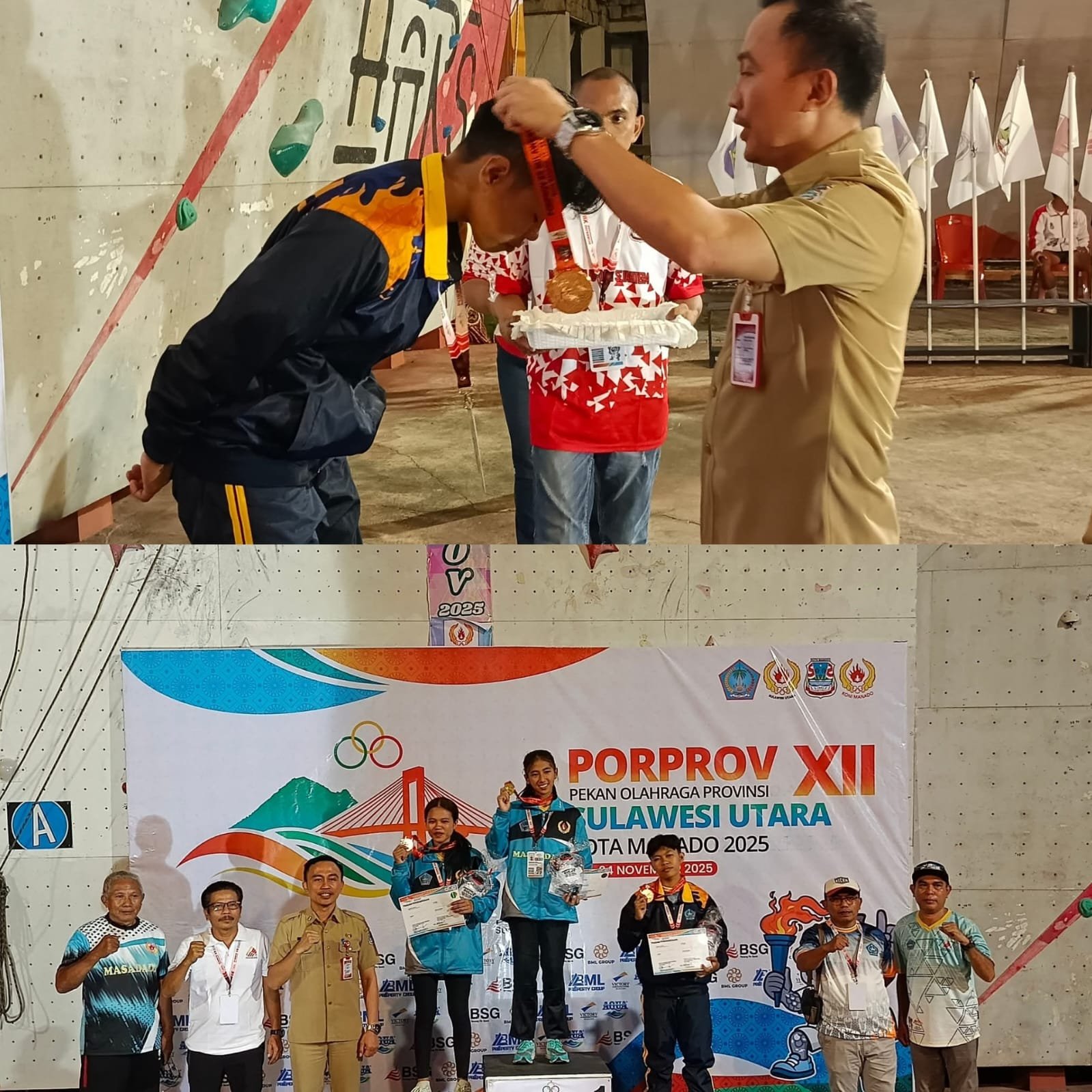 Atlet panjat tebing Kabupaten Kepulauan Sangihe, Liyan Mangari, kembali menunjukkan kemampuan terbaiknya pada ajang Pekan Olahraga Provinsi (PORPROV) Sulawesi Utara XII yang digelar di Venue Panjat Tebing Manado, Senin (17/11/2025). Pada nomor Speed World Record (WR) perorangan putri, Liyan sukses menyumbang medali perunggu bagi kontingen Sangihe.