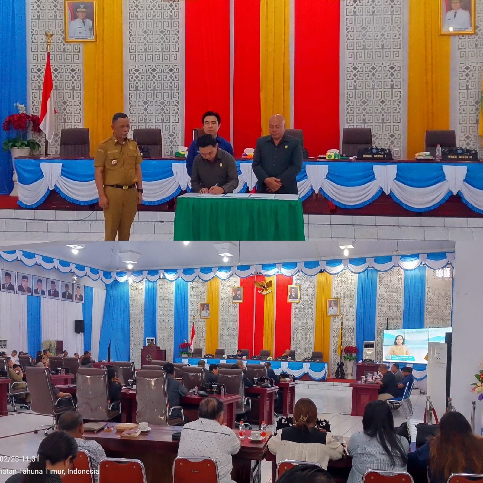 Rapat paripurna dipimpin Wakil Ketua DPRD Risald P Makagansa, didampingi Wakil Ketua II Marvein Hontong, serta dihadiri seluruh anggota DPRD. Turut hadir Bupati Kepulauan Sangihe Michael Thungari, Sekretaris Daerah, para Asisten Setda, para Camat, serta pimpinan Organisasi Perangkat Daerah (OPD).