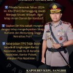Kapolres Sangihe Imbau Jaga Kondusifitas Jelang Pilkada Serentak 2024 Sangihe|25 November 202425 November 2024oleh Jurnal6 Sangihe, jurnal6.com Menjelang puncak tahapan Pemilihan Kepala Daerah (Pilkada) serentak 2024, Kapolres