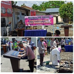 Bangun Kapel Polres Minsel, Kapolres Tandatangani Prasasti Minsel|10 April 202110 April 2021oleh Jurnal 6 Minsel, Jurnal6 :Polres Minahasa Selatan menggelar acara ibadah Peletakan batu pertama pembangunan