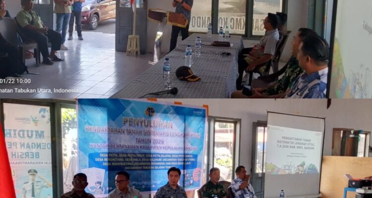 Penyuluhan PTSL 2026 Digelar di Tabukan Utara, Bupati Sangihe Tekankan Kepastian Hak Tanah Warga Sangihe|22 Januari 202622 Januari 2026oleh Jurnal6 Sangihe, jurnal6.com Bupati Kepulauan Sangihe, Michael Thungari, menghadiri kegiatan Penyuluhan Pendaftaran Tanah
